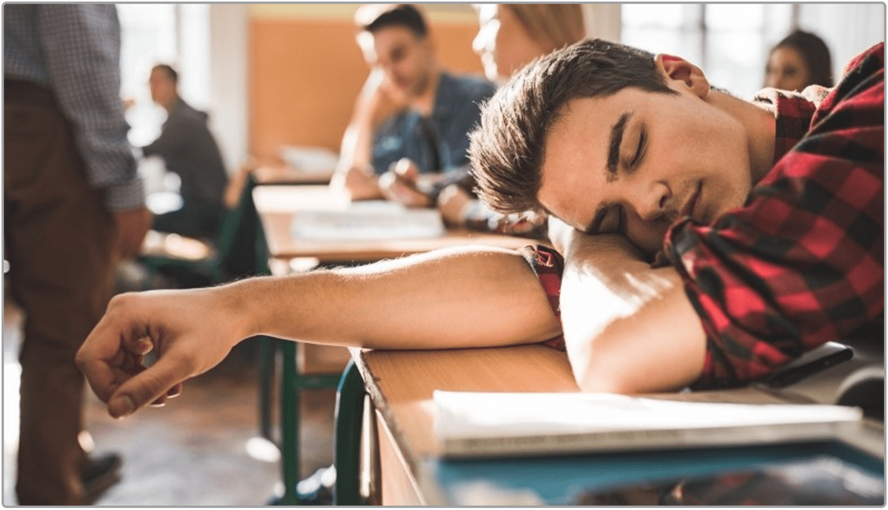 Which means that teenagers don't even start to get tired till 10:00 or 11:00 pm, and they don’t finish going through their deep sleep cycles until 4:00 or 5:00 am. Yet most teenagers still have to wake up around 6:00 or 7:00 am (at least on school days).
